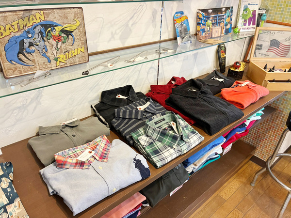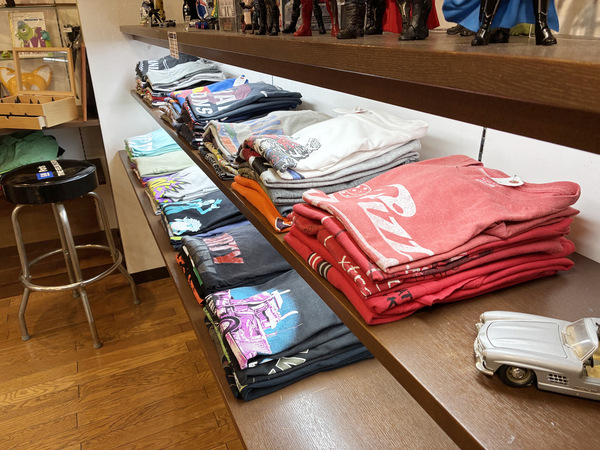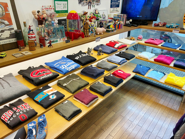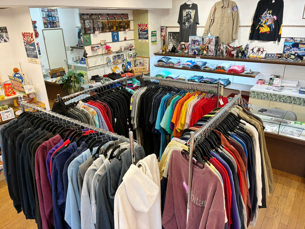古着の最大の魅力は、海外から届くすべてが“一点物”であること。キャラクターTシャツ、バンドTシャツ、カジュアルブランドまで幅広く取り揃え、手頃な価格でご提供しています。おもちゃ箱をひっくり返したような店内で、宝探しのようなワクワク感を楽しめる店づくりを心がけています