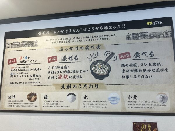 当店は創業77年、乾麺製造の製粉業を原点に、饅頭・大判焼きの販売を経て、うどん店として発展してきました。12歳の時に生まれた「ぶっかけうどん」が全国へ広まり、地域の名物として知られる存在に。現在は三代目が継承し、伝統を守りつつ、エンターテインメント事業など新しい挑戦にも取り組んでいます。