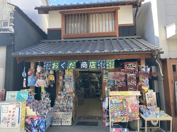 奥田商店 2025年11月20日 最終更新日時 : 2025年12月5日 minpromotionショッピング食べ物おもちゃ・人形観光みやげ観光名物食べ歩き古民家・日本家屋明治14年創業の老舗おもちゃ店。昭和の面影を感じる懐かしいおもちゃや駄菓子がずらりと並び、訪れるだけで童心に帰れる場所です。歴史ある建物に店を構え、その佇まいはまるで『ふしぎ駄菓子屋・銭天堂』の世界そのもの。世代を超えて愛される、商店街の名物店です。岡山県倉敷市阿知2-23-7086-422-3052倉敷本通り商店街キーワード:駄菓子・おもちゃ・レトロおもちゃ関連するお店: 田中商店 木本戎堂 其楽堂 肉のいろは 阿知店