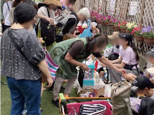おもちゃや本、洋服などが並ぶ商店街ふろしき市。