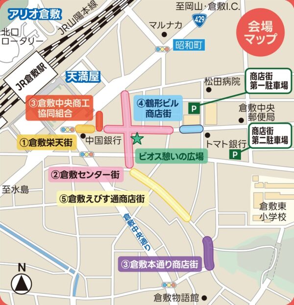 場所:各商店街、天満屋倉敷店、アリオ倉敷